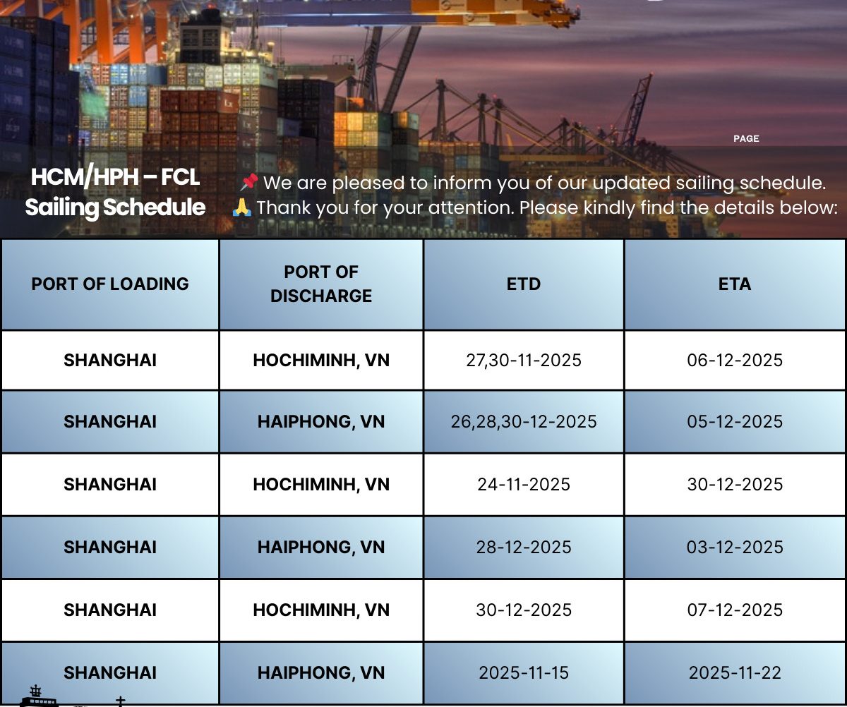 Hàng sẽ được vận chuyển về cảng Cát Lái hoặc cảng Hiệp Phước tùy lịch tàu.